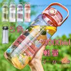 ウォーターボトル 2L ウォーター ボトル2リットル 夏 タイムマーカー 直飲み 大容量水筒 ストロー 洗いやすい 目盛り 大容量 プラスチック ワンタッチ