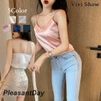 大人キャ ミシンプル サテン 風 レディース 大人インナー Vネック 上品 vivishow