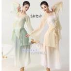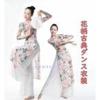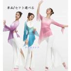 古典舞踊ダンス 衣装 レディース チャイナ民族ダンス クラシカル 古典ダンス 練習着 レッスンウェア 長袖 ロング丈 ワンピース ブラウス サイドスリット シース