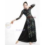 ダンス 衣装 古典舞踊ダンス 衣裳 長袖 ロング丈 ブラウス チャイナドレス サイドスリット 総レース 花柄 シースル ヨガ バレエ ラテン 民族ダンスウェア レディ