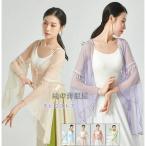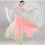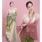 大人中華ダンス衣装 水袖 広袖 飄逸 古典舞踊 中国踊り 古典漢唐風 ダンス 衣装 Vネック 交差 リボン結ぶ ブラウス グラデーション 無地 シフォン 飄々 チャイ