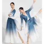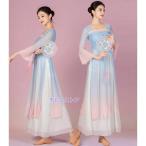 バレエ 古典ダンス衣装 レディース 古典舞踊 衣裳 中華ダンス チャイナ民族ダンスウェア 練習着 長袖シースル グラデーションブラウス アシンメトリー ストーン
