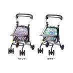 シルバーカー キュートミニW フラワー・ペイント柄 ウィズワン コンパクト カーブハンドル 歩行 介護 折り畳み