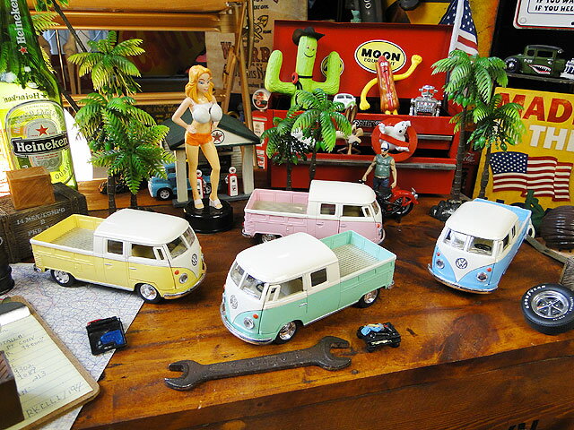 1963年 フォルクス・ワーゲン ピックアップ・ダブルキャブ ミニカー 1/34スケール (パステルカラーシリーズ4台セット) アメリカン雑貨 アメリカ雑貨 モデルカー ジオラマ グッズ