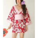 浴衣 レディース 可愛い おしゃれ ゆかた コスプレ衣装 ミニ浴衣 パーティー イベント 女子会 花柄 ヒョウ柄 ハイビスカス柄 ランジェリー 3点セット