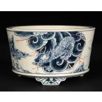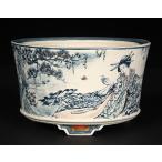 七代渋草柳造染付山水鯨図丸鉢 盆栽鉢 鉢 植木鉢 盆器 作家鉢 bonsaipot shibukusa 絵鉢 絵付 しぶくさ りゅうぞう 4号 12cm 小品盆栽 ミニ盆栽に最適 現品限り 一点物 送料無料