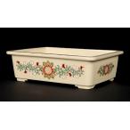 沈壽官窯色絵草花長方鉢 盆栽鉢 鉢 植木鉢 盆器 絵付鉢 薩摩 さつま サツマ satsuma 白薩摩 ちんじゅかん 小品盆栽 ミニ盆栽 雑木盆栽に最適 送料無料
