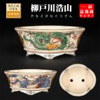 盆栽鉢 柳戸川浩山龍図木瓜式鉢 絵付鉢 手造り 手描き 4号 14cm 小品盆栽 ミニ盆栽に最適 現品限り