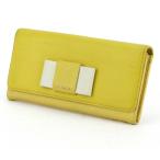 【週末タイムSALE★30%OFF】ミュウミュウ 長財布 ファスナー付き 財布 レディース リボン イエロー ホワイト 白 ゴールド 中古