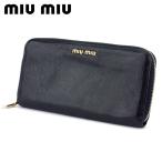 【週末タイムSALE★30%OFF】ミュウミュウ 長財布 ラウンドファスナー 財布 レディース ロゴ ブラック ゴールド 中古