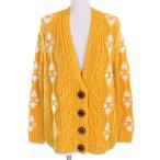 極美品△MIUMIU ミュウミュウ 2020年 MMF307 バージンウール100% Vネック ローゲージ ケーブル ニット カーディガン イエロー 38 正規品
