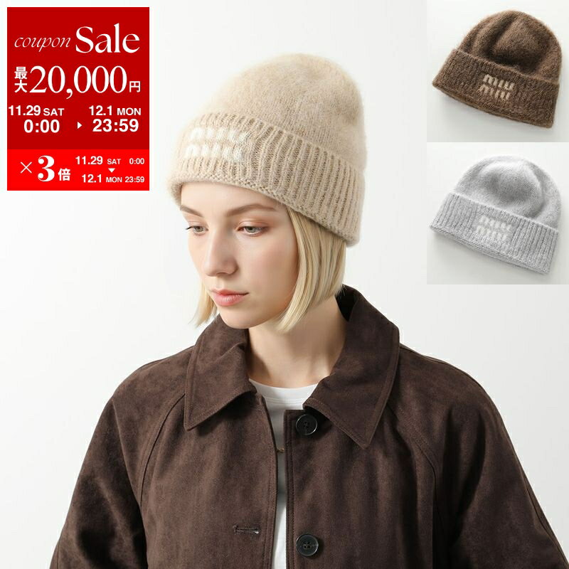 【最大2万円OFFクーポン対象・11/29~12/1限定】MIUMIU ミュウミュウ ニット帽 5HC378 2CQD レディース ニットキャップ ビーニー モヘア ウールブレンド ロゴ 帽子 カラー3色