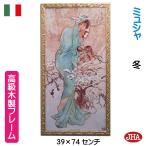 【クーポンあり】JHA イタリア製 高級木製フレーム 絵画 インテリア 世界の名画 アルフォンス・ミュシャ「四季:冬」&アンティーク・ゴールド W386×H736 IP-111 油絵 額入り 額絵 美術館 アートポスター 額装 アート額絵 ミュージアム 玄関 リビング お祝い ギフト