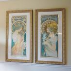 ヴィンテージ アルフォンス ミュシャ画 「 桜草 」 「 羽根ペン 」 2枚セット シルクスクリーン ポスター Alfons Mucha 0702370-0702371 ビンテージ 絵画 インテリア 壁掛け 絵画 額入り 絵画 ポスター 絵画 海 インテリア 雑貨 アンティーク アンティーク調