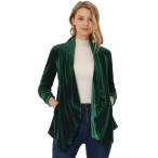 uxcell Allegra K カーディガン ショールカラー オープンフロント ベルベット ポケット付き レディース グリーン XS