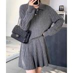 ワンピース 2点セット ケーブルポロカラーニット&ミニスカートセット