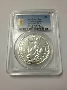 2014 英国ブリタニア ミュール、月の馬の表面付き 1 オンス .999 シルバー コイン - PCGS MS68
