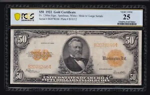 1922年 FR#1200a ミュール $50 ラージゴールド証明書「PCGS VF25」