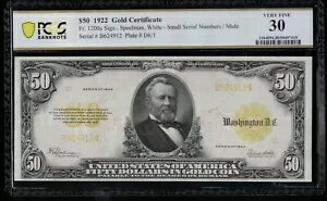 SC 1922 $50 Fr.1200a ミュール スモール S/N バラエティ SCARCE ゴールド証明書 PCGS 30 912