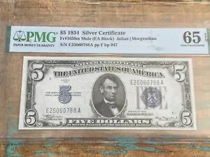 $5 1934 1605m MULE EA ブロック シルバー 証明書 PMG 65EPQ - 希少な 3 微細品のみ