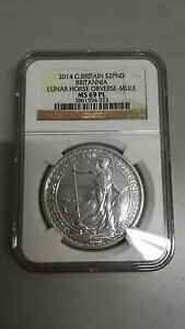 ブリタニア ミュール エラー 月の馬の表面付き 2014 1 オンス シルバー コイン - NGC MS69 PL