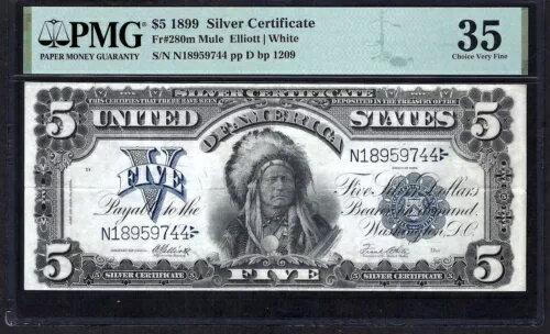 ???? 1899 $5 インディアン チーフ "ミュール" ??エリオット&ホワイト?? PMG チョイス VF 35 ゴージャス !