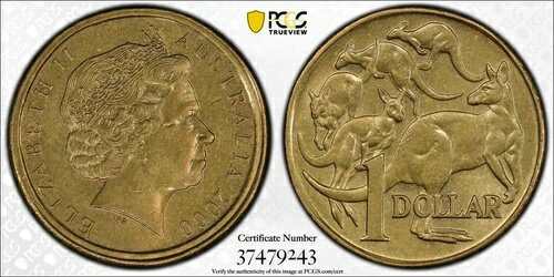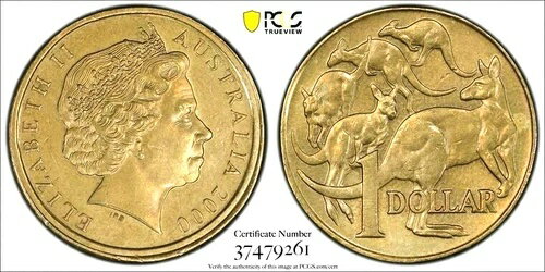 オーストラリア 2000 年。 1 1 ドル/10 10 セントの誤差。ミュール。 PCGSオーストラリア+