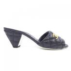 極美品☆CHANEL シャネル G38820 マトラッセ ラムスキン サンダル ミュール ブラック ゴールド金具 36 イタリア製 レディース