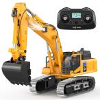 【並行輸入品】DOUBLE E ボルボ 1:16 RCショベルトイ、3イン1の建設玩具、360°回転、おもちゃ掘り機、金属ショベルドリルグラブ付