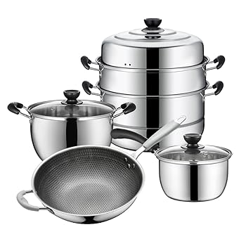 【中古】【未使用】ポットセットコンビネーションステンレス鋼蒸し器スープポットミルクポットガスガスストーブ家庭用電磁調理器rsal(色:A、サイズ(A写真が示す