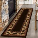 【並行輸入品】ヴィンテージ フォレスト ブラウン ロング 廊下 ラグ ランナー 3.3x10フィート ベア ムース 野生動物 エリアラグ 通気性