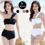 水着 レディース バンドゥビキニ 2点セット おしゃれ かわいい ワンカラー 黒 白 無地 ブラ シンプル ショーツ