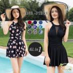 水着 レディース ワンピース オールインワン ハイネック 体型カバー水着 ママ水着 20代 30代 40代 オトナ女子 大きいサイズ フレアスカート 可愛い 露出控えめ