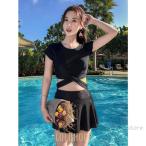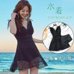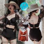水着 レディース 体型カバー ワンピース型 ショートパンツ 2点セット レース 韓国風 スイムウェア ママ水着 ビーチ 温泉 海水浴 水泳
