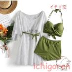 ビキニ 水着 レディース 体型カバー 3点セット 通販 可愛い レディス スリムウェア レースアップ スカート