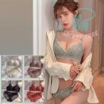 ブラジャー ショーツセット 女性下着 上下セット 3/4カップ 総レース シースルー 脇肉 ブラ 育乳ブラ バストアップ