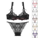 ブラジャー ショーツセット 女性下着 上下セット 3/4カップ シースルー/透け感 ノンパッド 総レース 脇肉 ブラ 育乳ブラ バストアップ