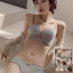 ブラジャー ショーツセット 女性下着 上下セット 3/4カップ ノンワイヤー ノンパッド 育乳ブラ バストアップ