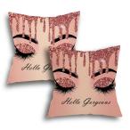 【並行輸入品】スロークッションカバー ハローゴージャスラッシュ メイクアップ 装飾 18x18インチ ローズピンク 2枚セット カウチ ベッド