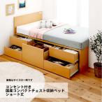 収納ベッド セミシングル コンセント付き国産コンパクトチェスト 薄型抗菌国産ポケットコイルマットレス付き ショート丈