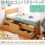 収納ベッド シングル コンセント付き国産コンパクトチェスト 薄型スタンダードボンネルコイルマットレス付き ショート丈