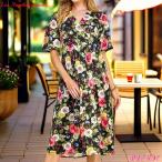ワンピース 膝下丈 Vネック 花柄 フレア 裏地付 上品 きれいめ カラフルワンピ S.M.L ブラックマルチ MADE IN USA ロサンゼルスアパレル CC240719LA001