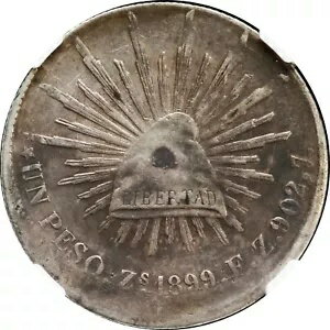 メキシコ 1 ペソ Zs 1899 F.Z.サカテカス、エラー、NGC AU 詳細。センターから10%オフ。