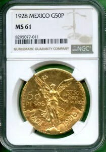 メキシコ 1928 50 ペソ ゴールド 1.2057 オンス NGC MS 61