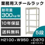 スチールラック 高さ210 幅95 奥行87cm 5段 300kg/段 単体 業務用 中量棚 タイガーラック YSモデル