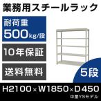 スチールラック 高さ210 幅185 奥行45cm 5段 500kg/段 単体 業務用 中量棚 タイガーラック YSモデル
