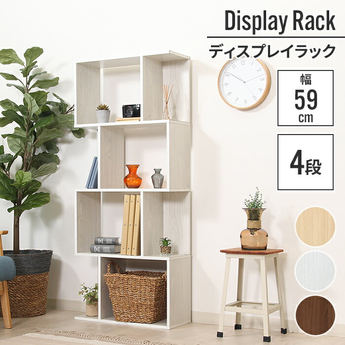 【楽天スーパーSALE10%OFF】【値下げSALE】ラック 4段 木目調 59×24×141cm ジグザグラック オープンラック ディスプレイラック 棚 収納 フィギュア プラモデル トロフィー 写真 S型