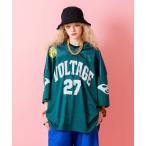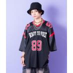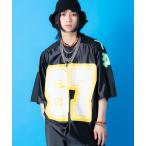 tシャツ a.p.o.v. ストリートロゴプリントシャイニーコンビメッシュオーバーサイズフットボールシャツ メンズ レディース