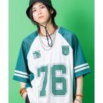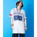 tシャツ a.p.o.v. サテン×メッシュ×リブ切替ナンバリングオーバーサイズフットボールシャツ メンズ レディース