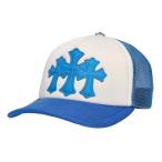 クロムハーツ【CHROMEHEARTS】3セメタリークロスパッチ/レザーパッチ/メッシュキャップ/トラッカーキャップ/帽子/クロスボール/ブルー×ホワイト【中古】131089